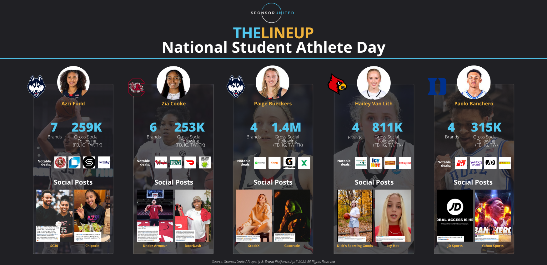 Five popular basketball players have been taking advantage of the new NIL rules. Azzi Fudd, Zia Cooke, Paige Bueckers, Hailey Van Lith, & Paolo Banchero all have over four deals and more than 250k social media followers.