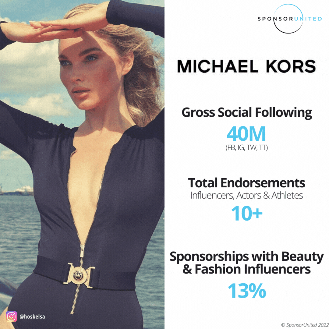 With just over 10 endorsement deals, NY-based Michael Kors is the most exclusive of the stylish triumvirate, yet leads the three in social followers (40M). Michael Kors' most successful social partnership is with Bella Hadid, which at last count tallied 3,342,441 engagements from 4 posts. The brand's average engagement per deal stands at 587,857.